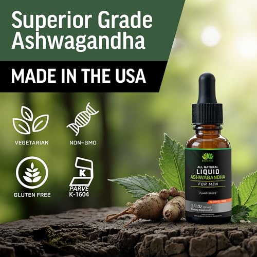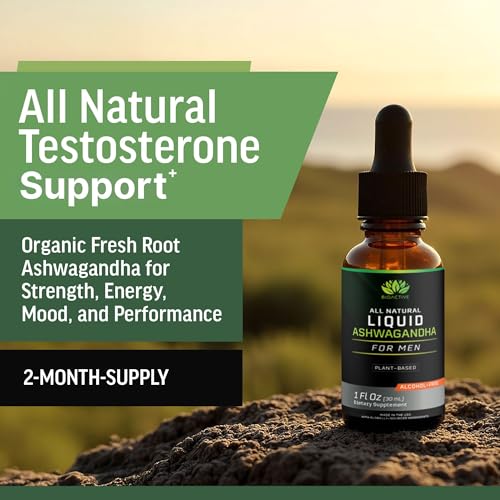 BIOACTIVE Liquid Ashwagandha Supplement Drops – Testosterone Booster For Men* – Adaptogen for Stress Support, Men’s Wellness – Organic, Vegetarian, Gluten Free, Non-GMO, 59 Servings (1 Oz, Unflavored)