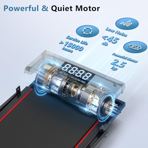 【Compact & Portable Design】: The walking treadmill weight is only 41.9 lbs and measure is 46.45×21.45×4.45in, making it is very space savings. It can be moved easily and placed under your desk, bed, or sofa. Whether at home or in the office, it’s very convenient for you to exercise
