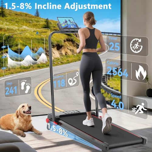 【3-level Incline Treadmill】:Increases tilt to 8%, burning over 200+calories per hour compared to a basic walking mat. you can still exercise comfortably at home! Whether it’s handling work tasks, making video calls, or watching your favorite shows, this treadmill placed under the table can blend into your lifestyle perfectly. There are no more excuses to avoid exercising
