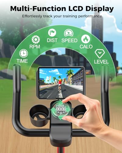 【32-Level Magnetic Resistance】 The spinning bike offers 32 levels of adjustable magnetic resistance, allowing precise customization to suit all fitness levels. The built-in LCD display tracks key workout metrics, including time, speed, distance, calories burned, RPM, ODO, and resistance level, keeping you informed and motivated