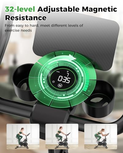 MJWW Exercise Bike, 32-Level Magnetic Resistance Stationary Bikes for Home, Low Noise 300LBS Weight Capacity Workout Cycling Bike for Home Gym with Pad Mount, LCD Monitor, Cup Holder