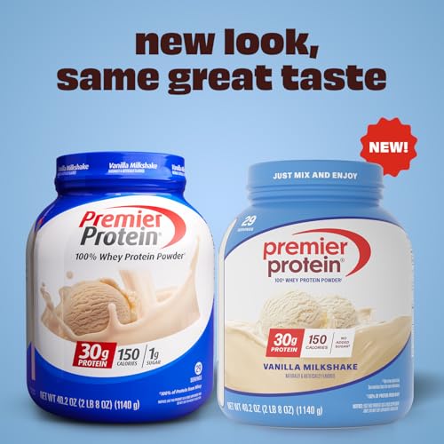 Premier Protein Powder, Vanilla Milkshake, 30g Protein, 1g Sugar, Gluten Free, No Soy, 40.2 oz, 29 Servings (Packaging May Vary)
