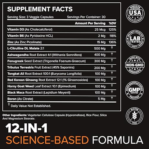 [12-IN-1 TESTOSTERONE PERFORMANCE BLEND] Fenugreek, Tongkat Ali, Tribulus & nine more clinical-dose nutrients fuel healthy T-levels, strength, drive & steady energy.* 100 % open-label – zero proprietary blends.