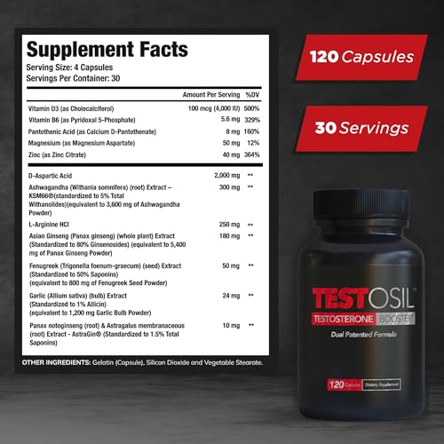 11-INGREDIENT-BASED FORMULA FOR HEALTHY TESTOSTERONE SUPPORT – Testosil is a premium testosterone booster for men, carefully crafted with clinically researched KSM-66 ingredients like Ashwagandha, Fenugreek, D-Aspartic Acid, and Zinc. This unique blend is designed to support healthy testosterone levels, which play a key role in energy, performance, and natural male vitality.