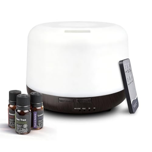 500ml USB Essential Oils Diffuser for Home,3 Aromatherapy Oils Set Diffuser with Remote Control,Small Air Humidifier for Home Bedroom Office Gym Yoga Gifts
