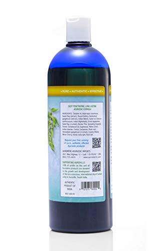 Auromere Ayurvedic Massage Oil – Vegan, Cruelty Free, Natural, Non GMO, with Cold-Pressed Sesame Oil Infused with 25 Herbal Extracts (32 fl oz), 1 Pack