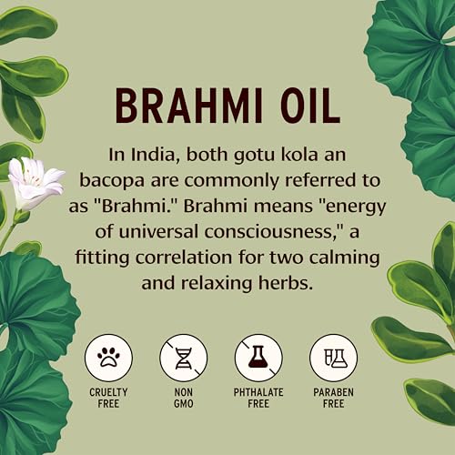 Banyan Botanicals Brahmi Oil with Sesame Base – Organic Ayurvedic Massage Oil with Gotu Kola and Bacopa – Calming Massage Oil for Focus & Relaxation – 2 oz – Non GMO Sustainably Sourced Abhyanga Oil