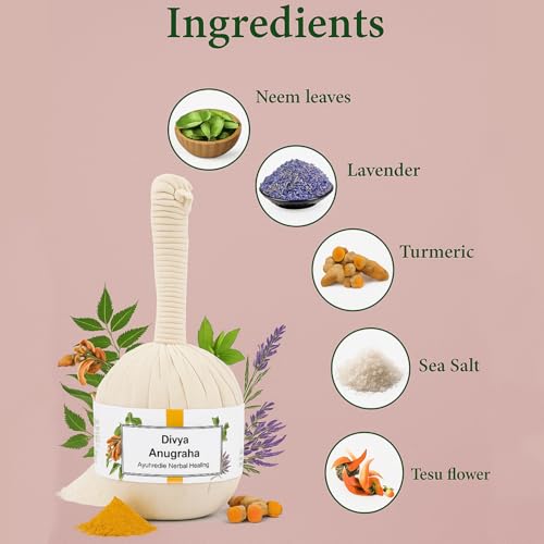 Divya Anugraha 100% Natural Ayurvedic Herbal Manual Massager Potli, Pain Relief, Knee, Muscles Relaxation, Neck, Back, Legs, Increase Blood Circulation for Men Women – 180GM
