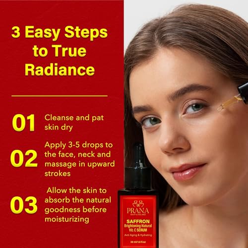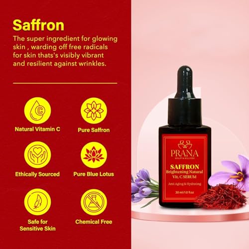 PRANA Saffron Brightening Vitamin C Face Serum – Ayurvedic Skincare with Pure Blue Lotus, Vetiver & Sandalwood – Hydrating Anti-Aging Serum for Even Skin Tone, Dark Spots & Radiant Glow (30ml)